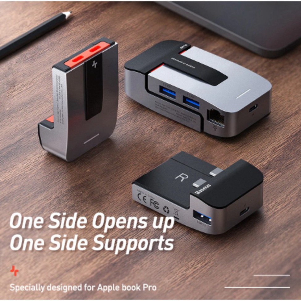 Bộ Chia Hub Đa Năng Baseus Armor Age Type-C Bracket Multifunctional Hub Adapter 9in1 3USB3.0 / Type-C / HDMI/ Jack 3.5mm / RJ45 / 2Thunderbolt3 Cho Macbook Pro Air