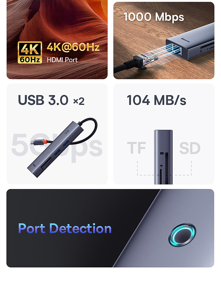Tóm lại, Hub Mở Rộng Kết Nối Đa Năng OS-Baseus Flite Series HUB Docking Station Space Grey là một sản phẩm tiện lợi và hiệu quả cho các thiết bị di động của bạn.