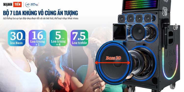 Với 7 loa đa dạng, mang đến trải nghiệm âm thanh vượt trội. Hệ thống loa bao gồm 1 bass 30, 5 loa trung, và 1 treble, tạo ra âm thanh sâu lắng và rõ nét. Bất kể bạn đang xem phim, nghe nhạc hoặc hát karaoke, âm thanh luôn ấn tượng và sống động.