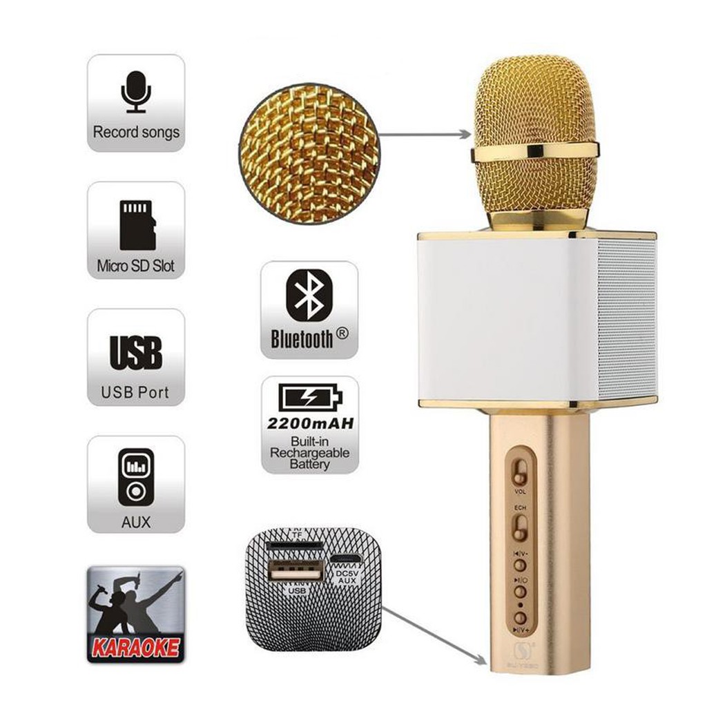Micro Karaoke Bluetooth SD-08 Hát Karaoke, Âm Thanh Chân Thật, Loa To, Bass Chuẩn, Dễ Sử Dụng.